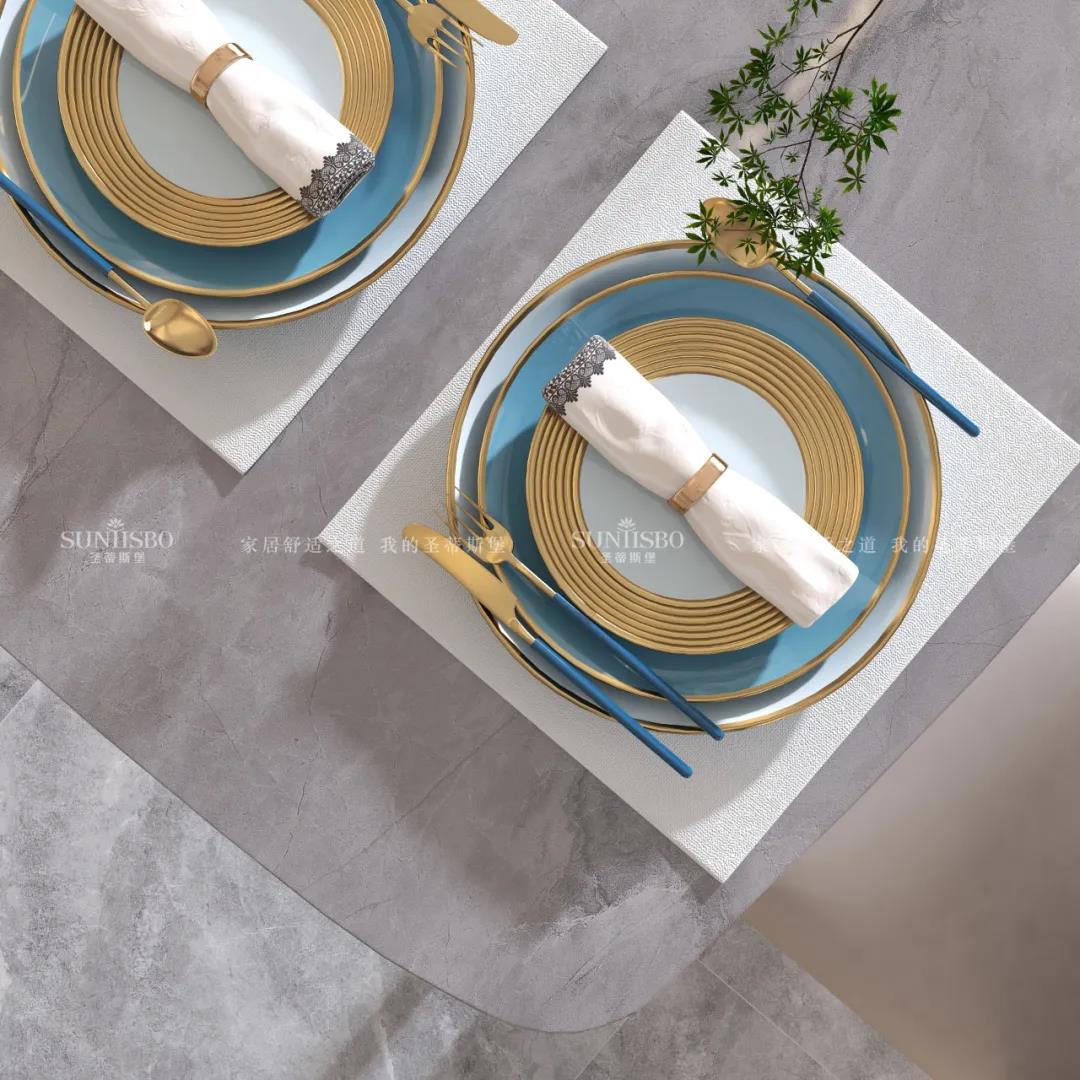 簡奢餐桌與玻璃大立柜,將空間簡化,帶來了純粹的空間視覺效果。金色鑲邊的點綴,為這份純粹增添了奢華質感。極簡玻璃定制柜體,拉開了大空間的開闊視野,光影交匯間,硬朗的氣質與柔和的自然光產生了趣味的互動,為空間提供了更具藝術張力的奢享用餐體驗。