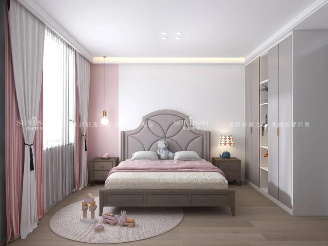 設計師以極致簡凈的白粉色調為基礎,從材質、光影到布局等方面進行輕盈處理,簡潔的白色調與光影充分互動,讓空間從空到滿進行變換,滿足一個小女孩的所有少女心,讓品質生活理念從小培養(yǎng)。