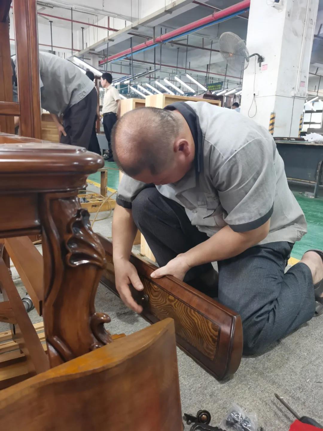 七月,一個(gè)熱情似火的季節(jié),一串串滑落的汗珠渲染著現(xiàn)場安靜而緊張氣氛。比賽現(xiàn)場,來自江門金海馬商場和南城美新名家具商場的參賽選手各司其職,聚精會(huì)神地投入比賽,憑借著專業(yè)的技能,一絲不茍的將一個(gè)個(gè)小部件嫻熟而準(zhǔn)確無誤地組裝起來,打造高質(zhì)量,細(xì)品質(zhì)的家具產(chǎn)品。