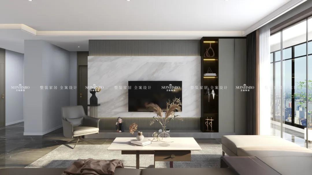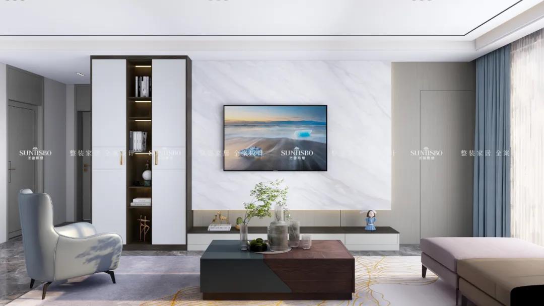 展示柜與電視柜設(shè)計成一個整體,
