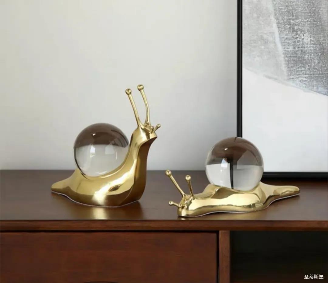 在黃銅材質(zhì)上勾勒出蝸牛流暢的肌肉線條,描摹蝸牛攀爬蠕動與站立眺望的姿態(tài),加上觸須伸縮,豐富而逼真的細節(jié)制作,生動有趣。