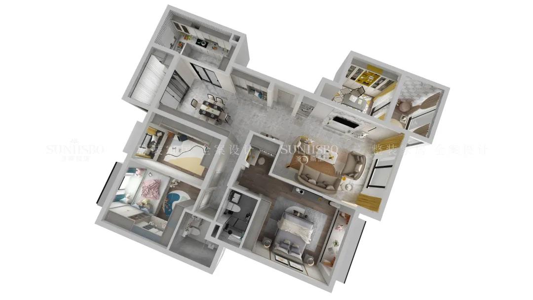 兒童房摒棄了傳統(tǒng)榻榻米的呆板與嚴(yán)肅,延續(xù)主臥輕奢雅致的空間氛圍,以木質(zhì)為主材質(zhì),利用面板的線條帶來(lái)視覺(jué)上的延伸,將童趣與理性相融表現(xiàn)兒童應(yīng)有的學(xué)習(xí)氛圍與生活習(xí)慣。開(kāi)放式展示區(qū)應(yīng)用藍(lán)色點(diǎn)綴,再次強(qiáng)化了空間專(zhuān)屬兒童的活躍格調(diào),也呈現(xiàn)了設(shè)計(jì)師在材質(zhì)與色彩運(yùn)用上的精細(xì)與專(zhuān)業(yè)。